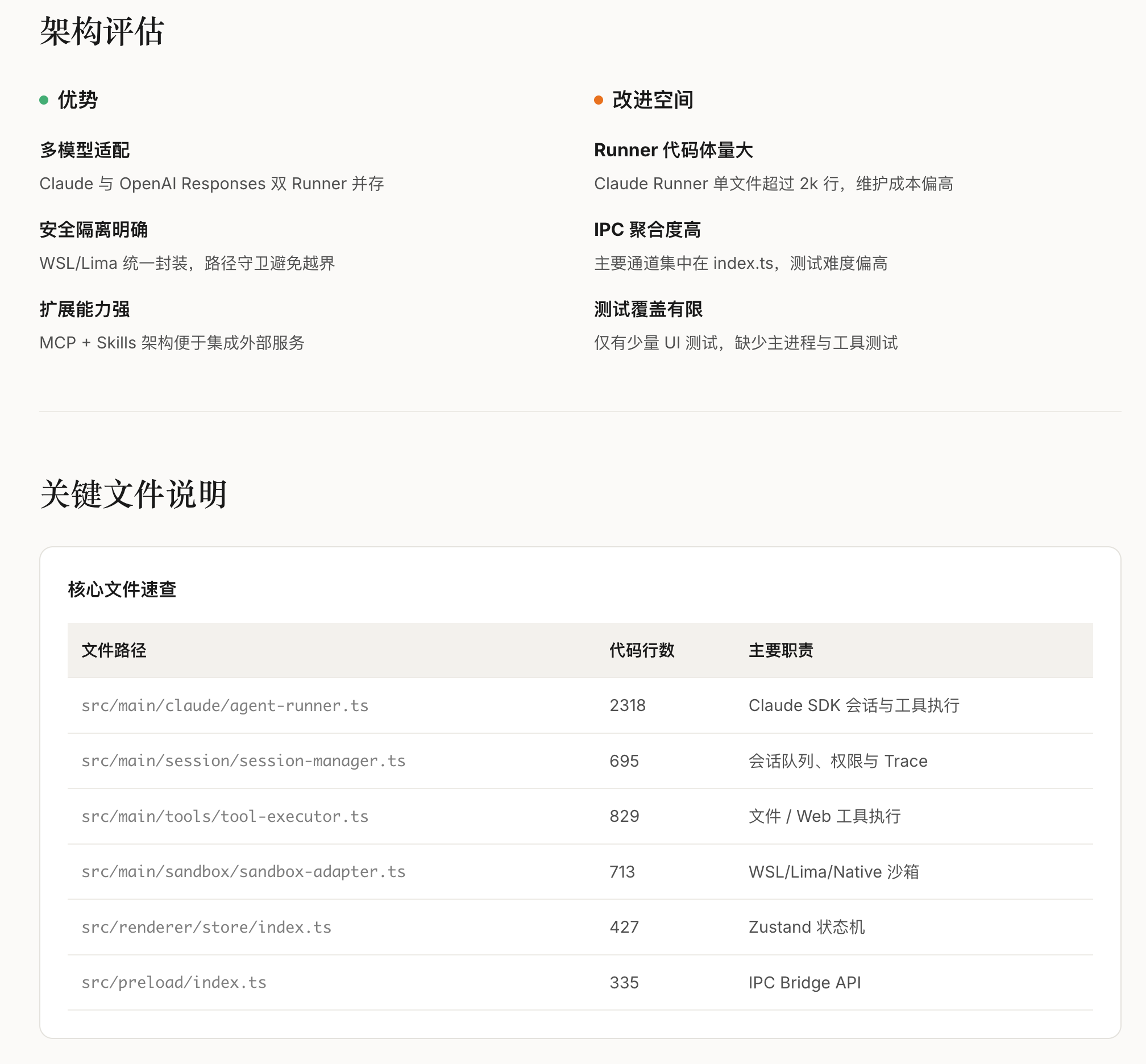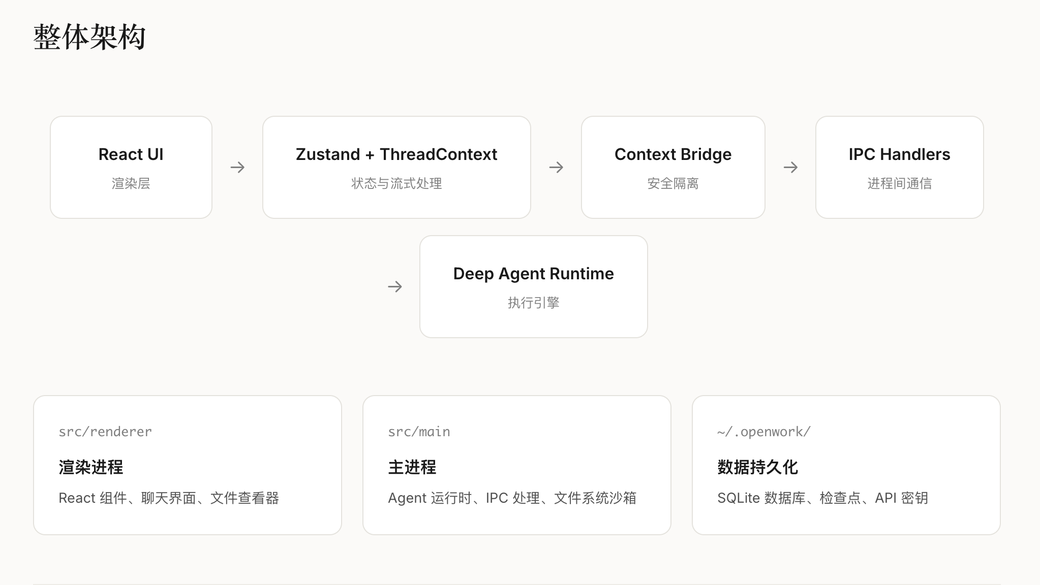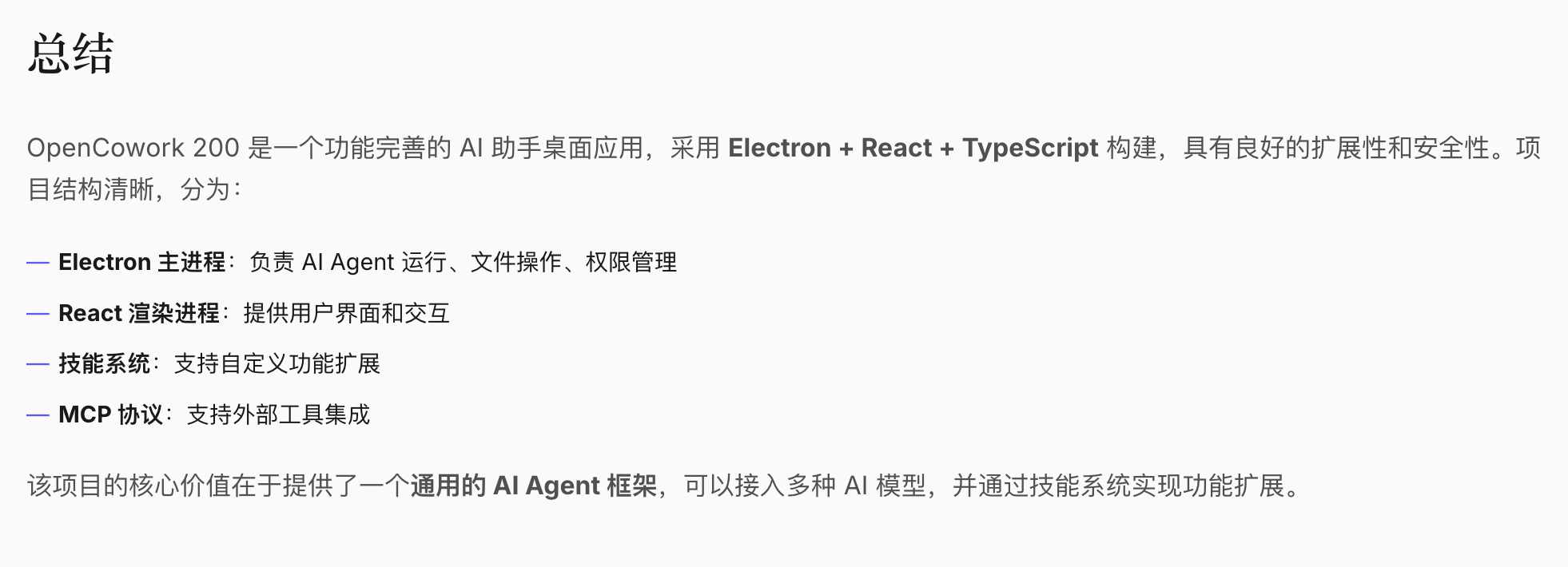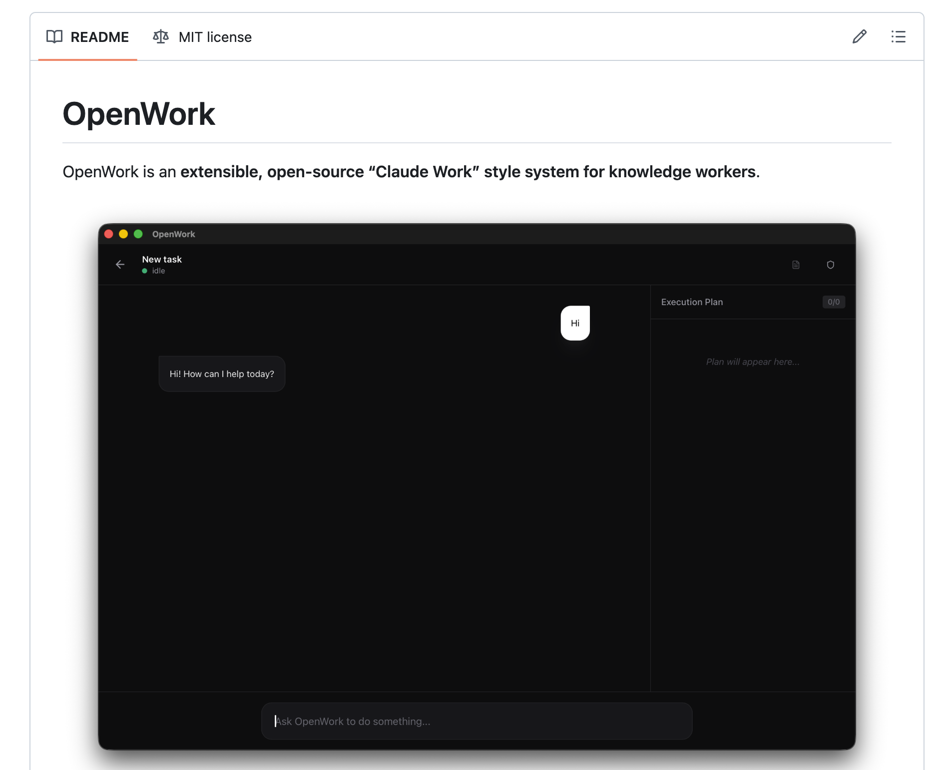 思考:anthropic总是能想出新的东西,比之前openai出智能体商店啥的强多了。从mcp到claude code到skill,再到cowork。因为cowork是闭源的,然后现在AI开发很强了,开源开发者一下就跟进了开源的cowork项目,ai办公助手,像豆包电脑端,还是得上传文件,然后没有特别针对办公场景。现在的cowork实际上就是claude code UI化,然后加强办公方面的能力,产品上的区别我觉得就有点像vibe chat的vscode,但是用户完全不用关心代码,只需要指定目录,这在文件管理上是一种很大提升。豆包那种上传文件,然后生成产出文件就有点落后了。
