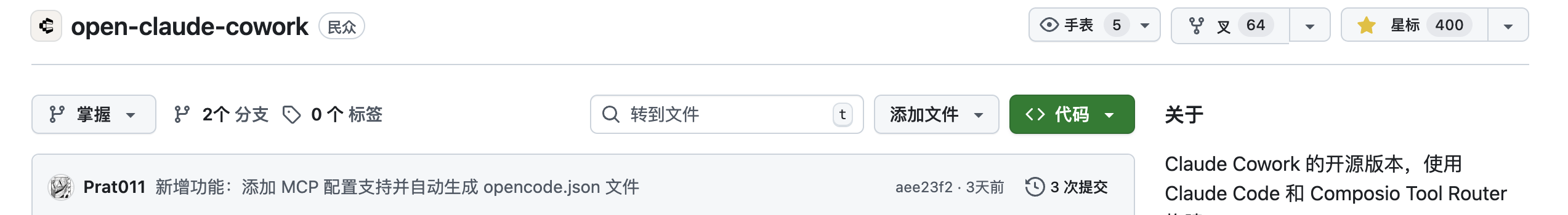 项目链接:https://github.com/OpenCoworkAI/open-cowork?tab=readme-ov-file