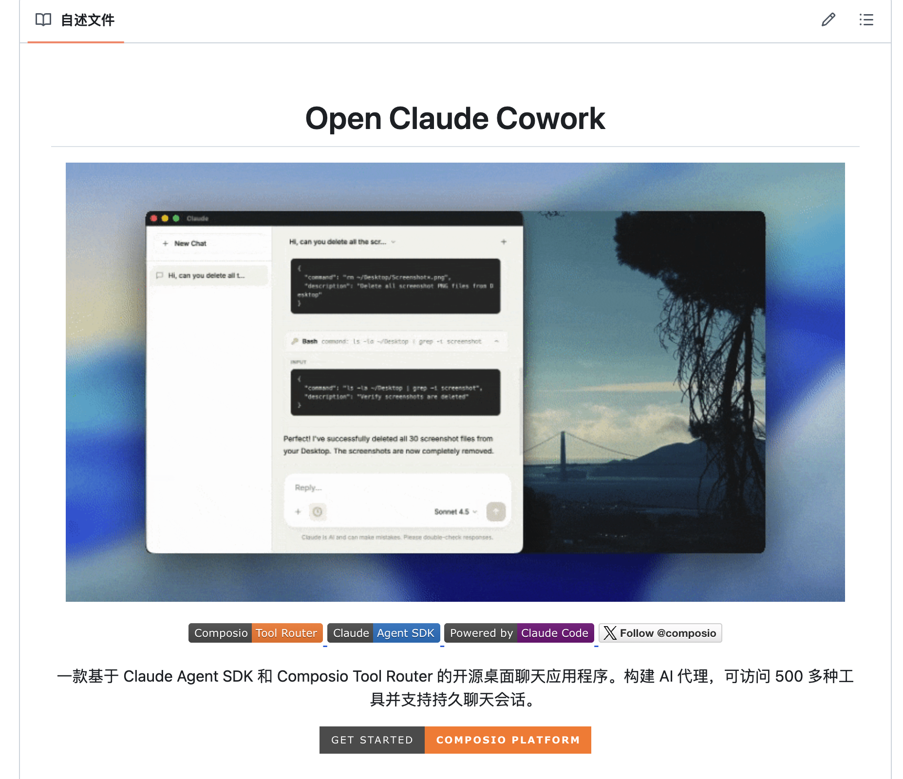 项目链接:https://github.com/ComposioHQ/open-claude-cowork